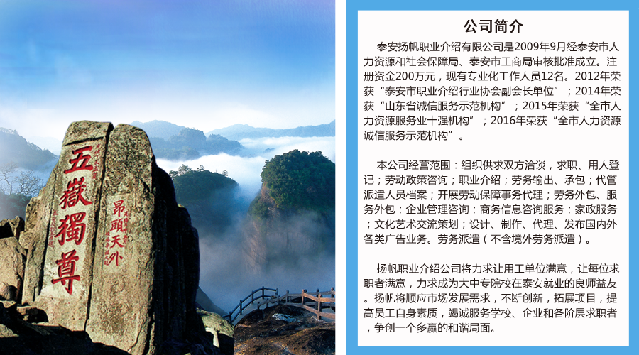泰安揚帆職業(yè)介紹有限公司
